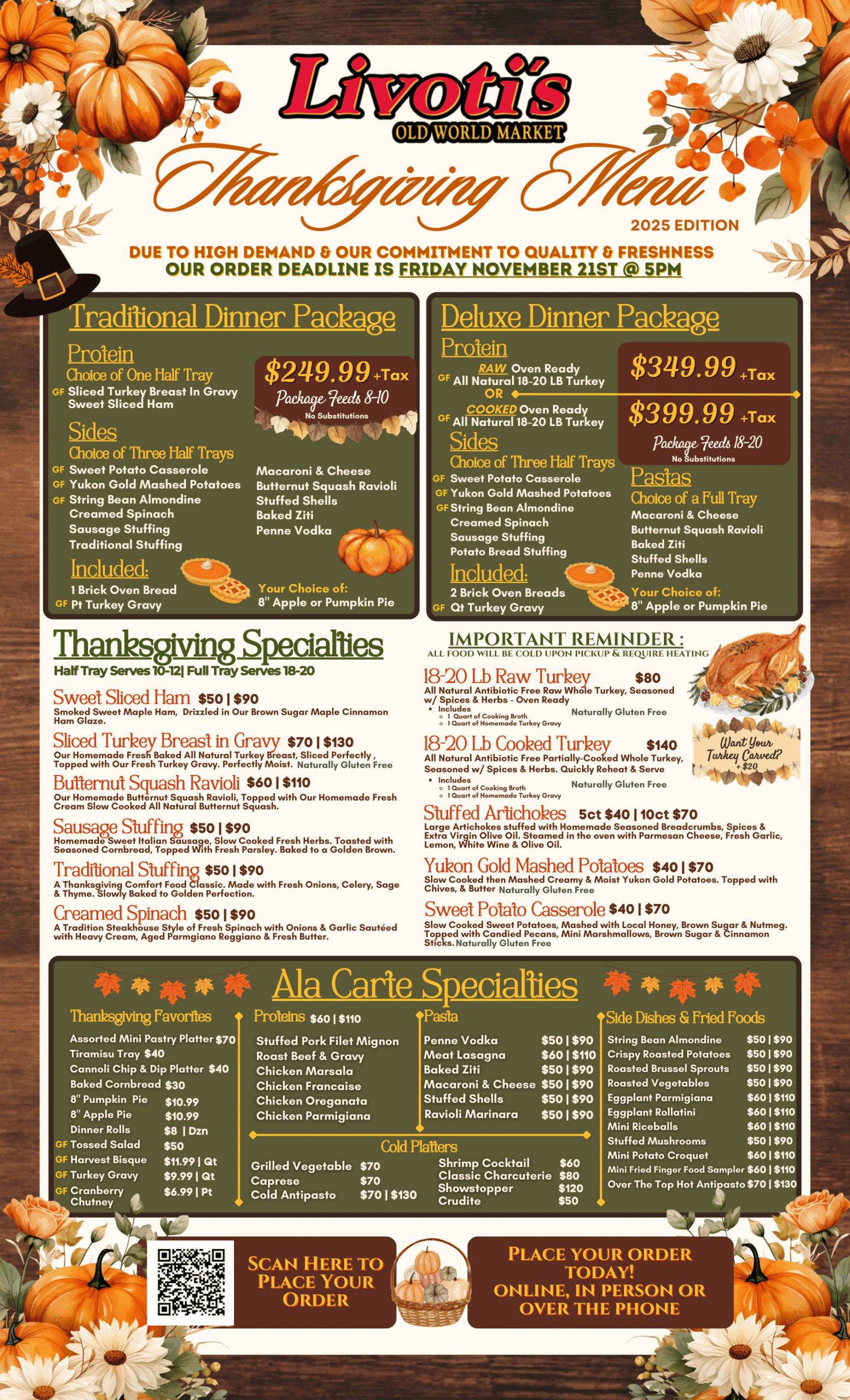 We have something for everyone at Livoti’s. You can always count on our everyday gourmet catering menu, which has been carefully crafted and designed so your next event is easy to plan and enjoy. Looking for something a bit more specific? Our seasonal menus are strategically created and ideal to make the busiest times of the year a little less stressful. From outdoor graduation parties to office holiday parties, we can do it all. Check out our latest menus below and feel free to reach out to us with any questions you have!